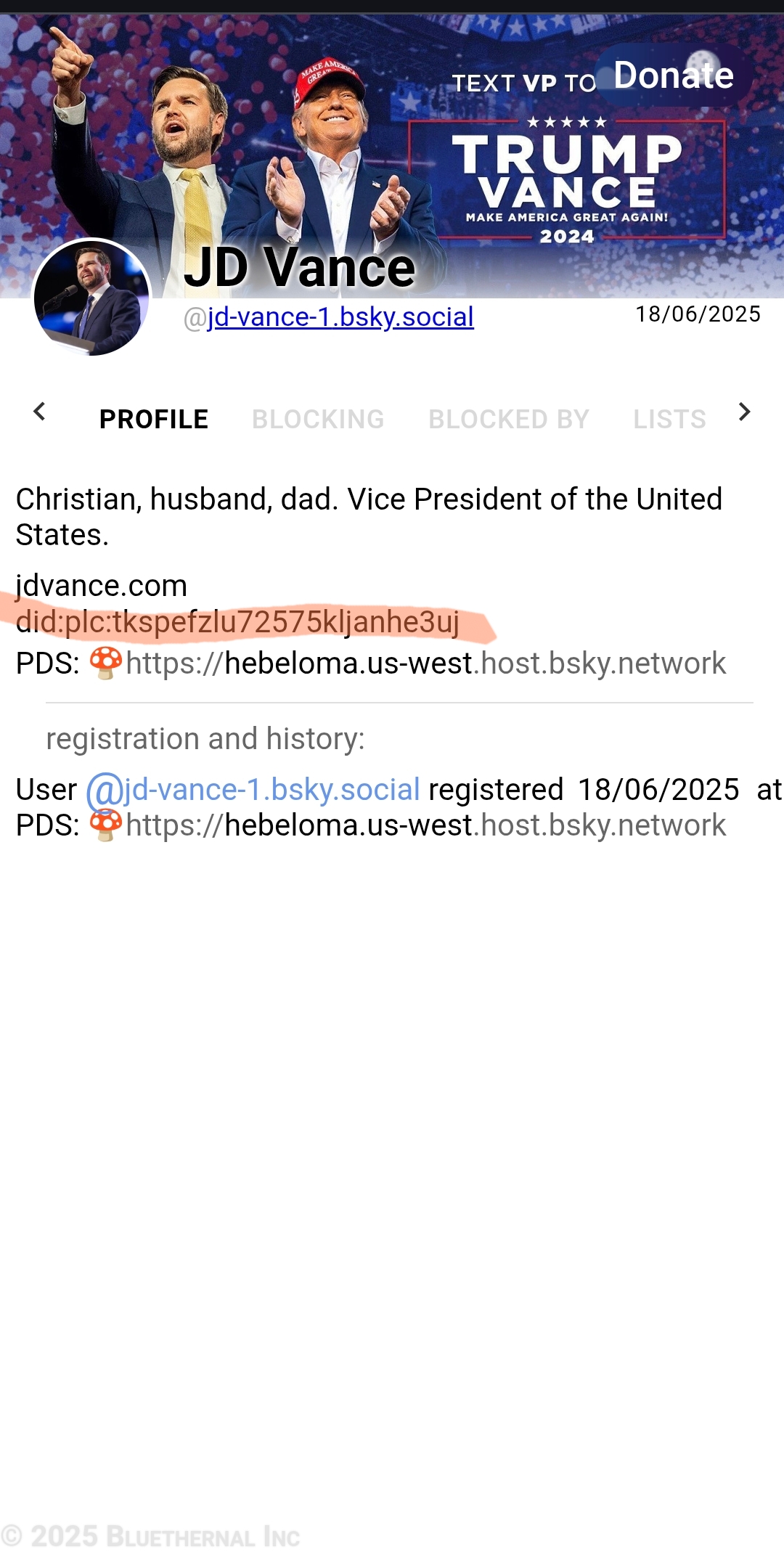 taper ton pseudo (jd-vance-1.bsky.social), normalement tu vas te retrouver sur l'onglet "profile",